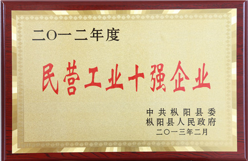 2012年度民營工業(yè)十強(qiáng)企業(yè)