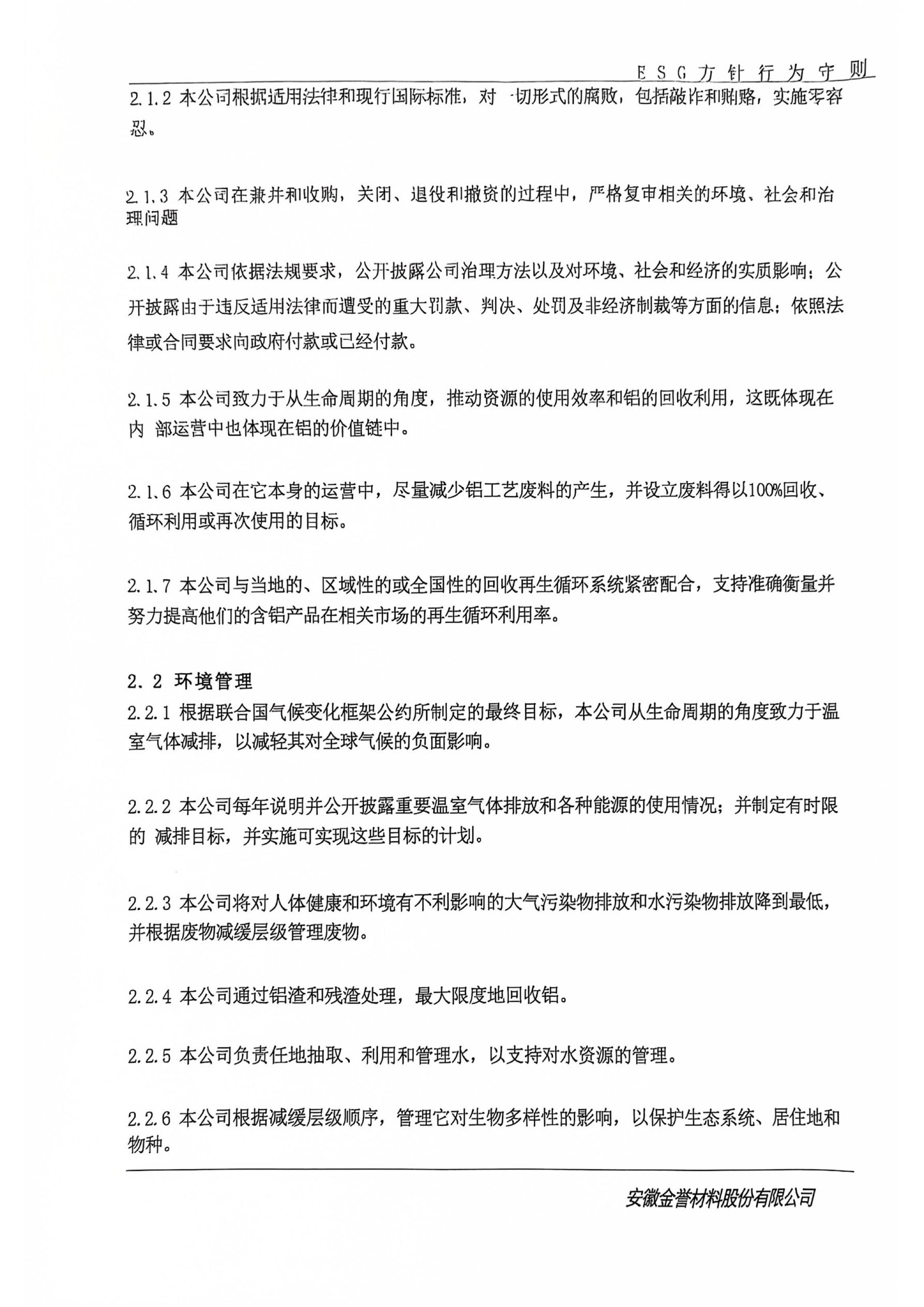 ESG方針行為守則