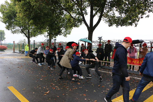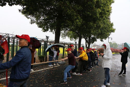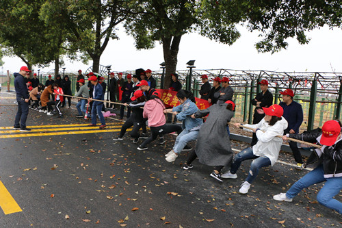 午餐過后,驅(qū)車前往樅陽鎮(zhèn)荷葉田田農(nóng)莊,在此進(jìn)行了激烈的拔河比賽,拔河比賽分男子組和女子組比賽。