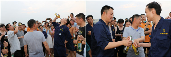 在燒烤活動中我們員工進(jìn)行了啤酒比賽,選手們拿到啤酒,兩兩一組,相對而立,看著他們笑的多開心呀........