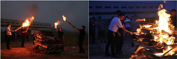 隨著夜幕的降臨,公司常務(wù)副總章振邦為我們點起了篝火,大家圍著篝火歡歌,笑語,一聲聲爽朗的笑聲回蕩在整個金譽廠區(qū)。