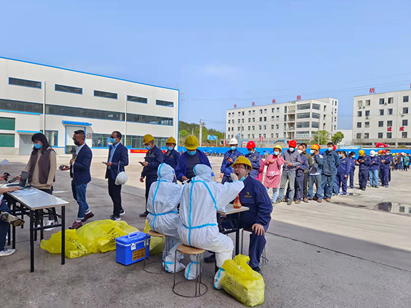 樅陽縣開發(fā)區(qū)針對公司職工比較多,核酸檢測不方便等難題,因地制宜,嚴密部署,由公司提供的名單,安排工作人員提前通過微信、電話等與公司對接,為公司合理安排好上門核酸檢測的時間。