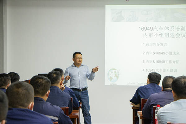 公司體系專員胡圣中在給內(nèi)審小組進(jìn)行16949汽車體系培訓(xùn)。